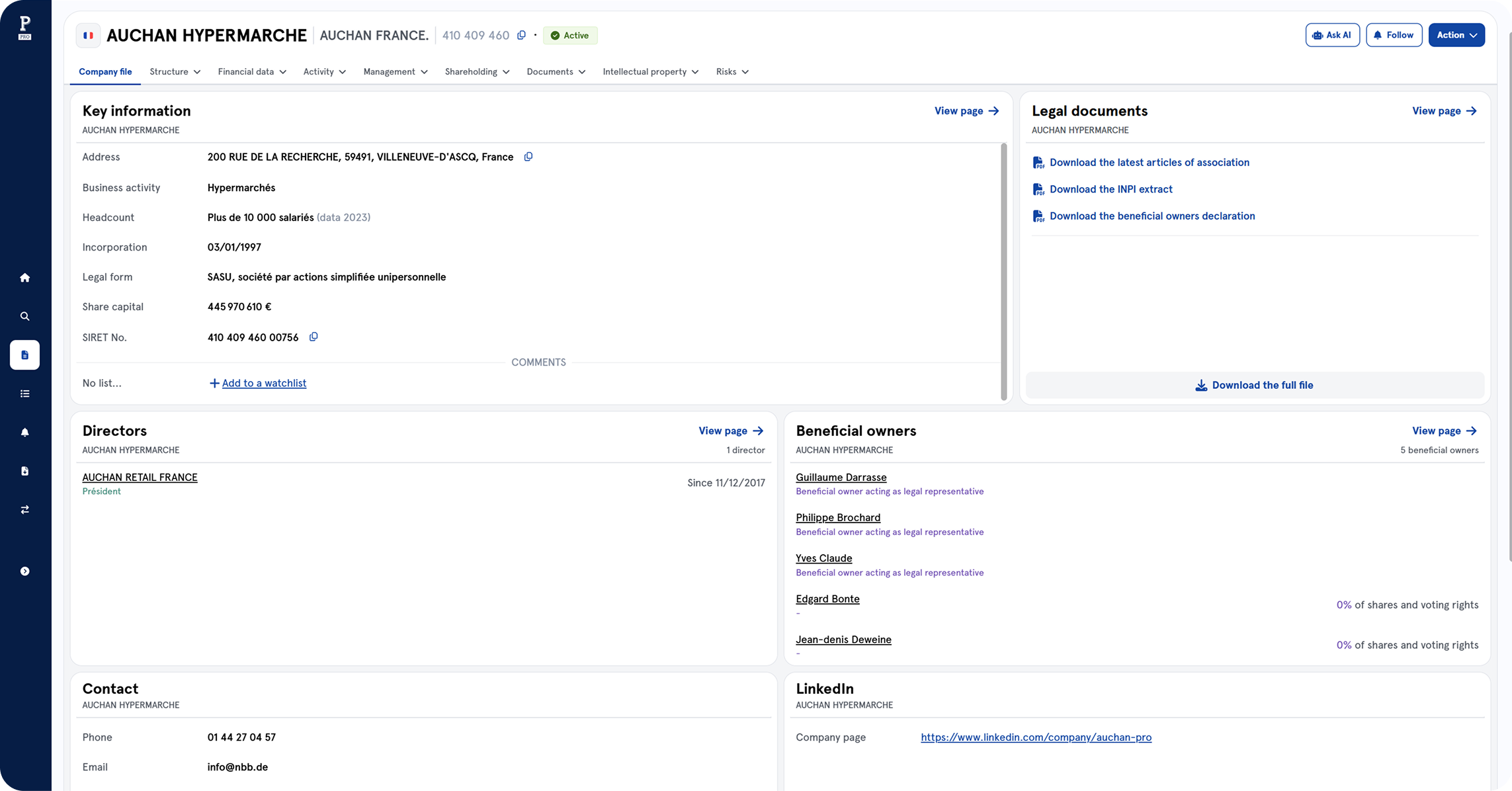 • UBO Mapping: Visual and granular breakdown of Ultimate Beneficial Owners and complex parent-subsidiary structures.